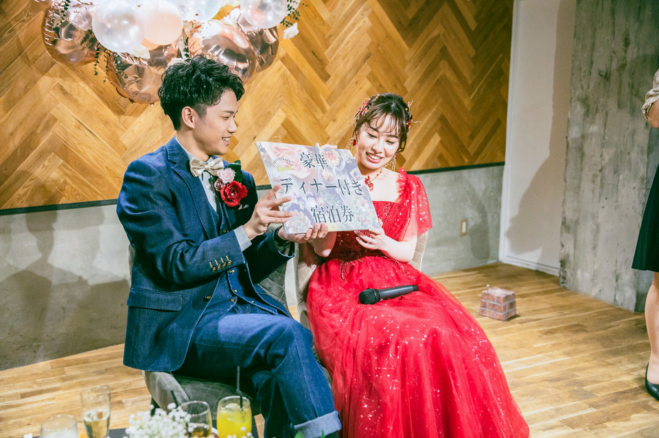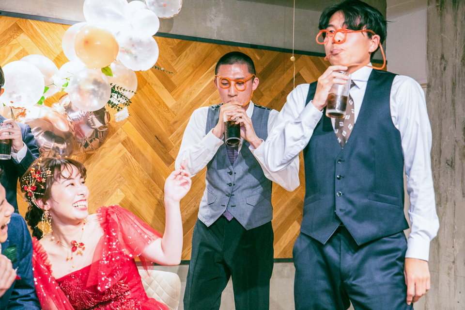 新郎新婦様にまつわるクイズや、ロングストローでの早飲み、