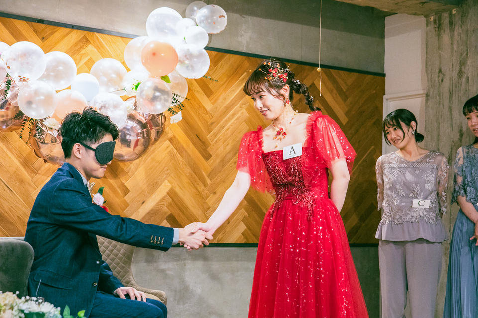 そして新郎様に目隠しをして、手の感覚だけで新婦様を当てられるか!