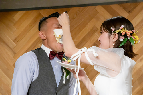 愛情分のウェディングケーキをお口いっぱいに受け止められました!