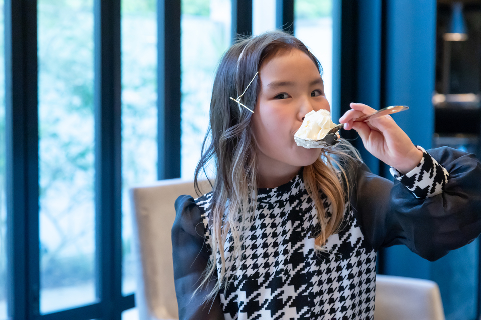 我慢できず大きなお口でケーキを頬張るこんな可愛いシーンも🤍笑